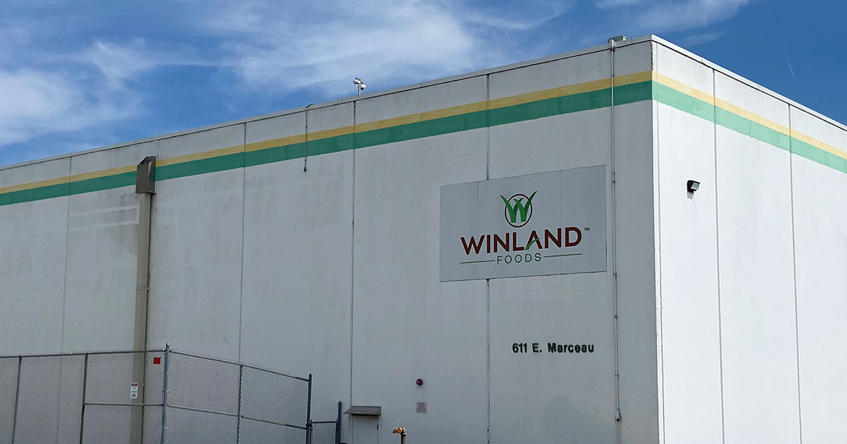 Three men—one in a black T‑shirt and cap, a chef in a white coat and red baseball cap, and a man in a black apron—stand in front of a bar.
